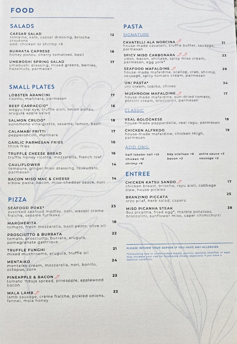 The menu is a tantalizing exploration of flavors, presenting a diverse array of dishes that celebrate both culinary traditions. Not to be missed is the Soft Shell Crab Pizza and the acclaimed Uni Pasta, which patrons rave about for its luxurious ingredients and perfect seasoning. The Short Rib Gnocchi, a dinner exclusive, is another standout that reviewers eagerly recommend. Every dish is crafted with a focus on quality, showcasing fresh ingredients and innovative techniques.