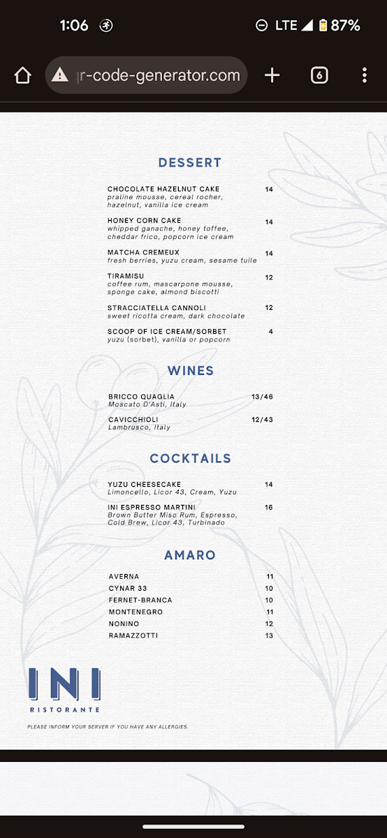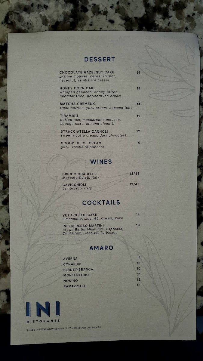 Whether you’re after a romantic dinner, a festive celebration, or simply a delicious meal, INI Ristorante is well-worth the visit. Please note that reservations are highly recommended given the restaurant's popularity. So, gather your friends or loved ones and discover this culinary gem for yourself!
